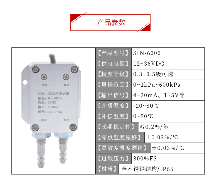 產品名稱:聯測_SIN-P6000 風差壓傳感器
