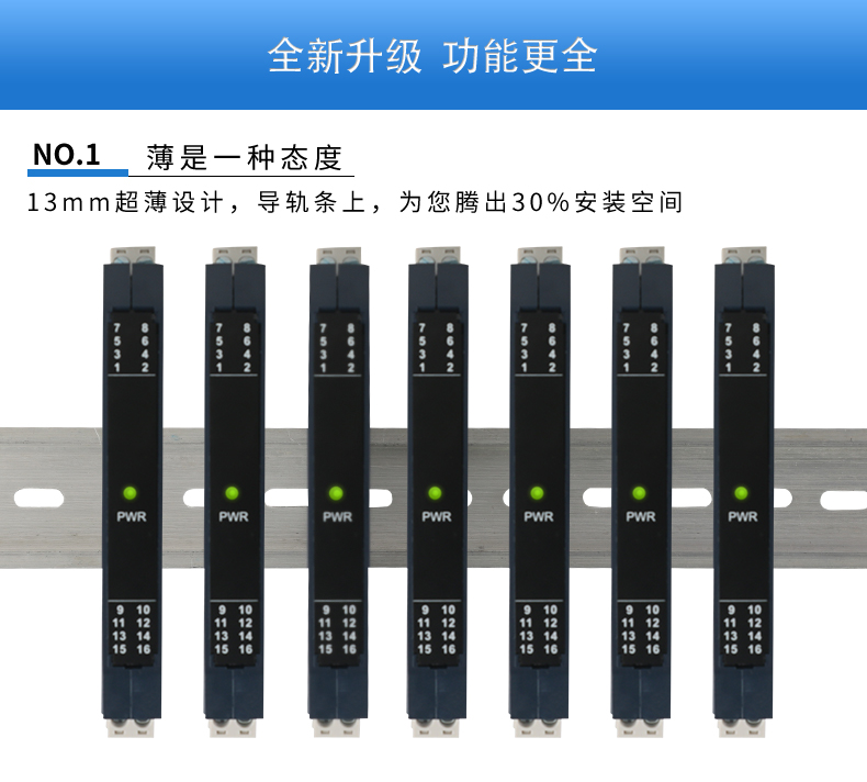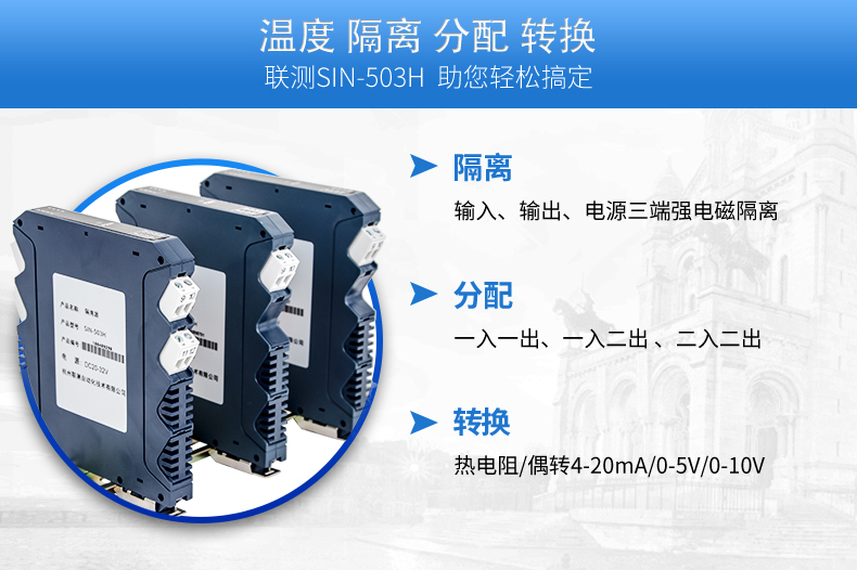 將PT100等熱電阻跟熱電偶信號轉換成各種電流、電壓等標準模擬量信號,可以與PC機、PLC、DCS等實現工控監測連接。抗干擾能力強,遠傳不受其他設備影響。輸入、輸出選擇范圍寬,準確度高。電源可選擇,導軌安裝便于檢測與安裝。廣泛應用于各種對溫度集中測量的監控系統中。
