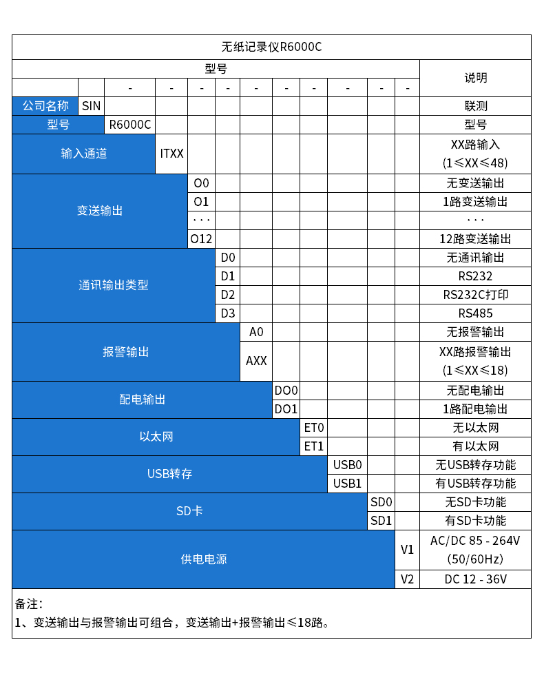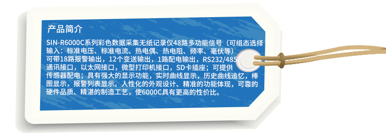 SIN-R6000C系列彩色無紙記錄儀48路萬能輸入(可組態(tài)選擇輸入:標(biāo)準(zhǔn)電壓、標(biāo)準(zhǔn)電流、熱電偶、熱電阻、頻率、毫伏等)??蓭?8路報(bào)警輸出,12個(gè)變送輸出,RS232/485通訊接口,以太網(wǎng)接口,微型打印機(jī)接口和USB接口,SD卡插座;可提供傳感器配電;具有強(qiáng)大的顯示功能,實(shí)時(shí)曲線顯示,歷史曲線追憶,棒圖顯示,報(bào)警列表顯示。