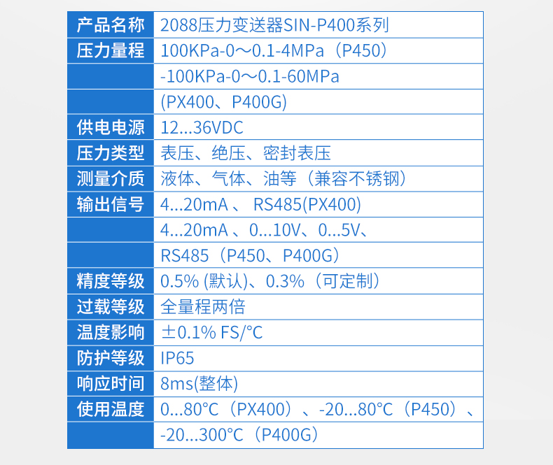 P400全數(shù)字電路保證精度,保證長(zhǎng)期零點(diǎn)和線性穩(wěn)定,現(xiàn)場(chǎng)液晶顯示,多種量程選擇,防雷擊,防射頻干擾,液晶顯示可通過按鍵調(diào)整零點(diǎn)和量程,方便用戶調(diào)試。