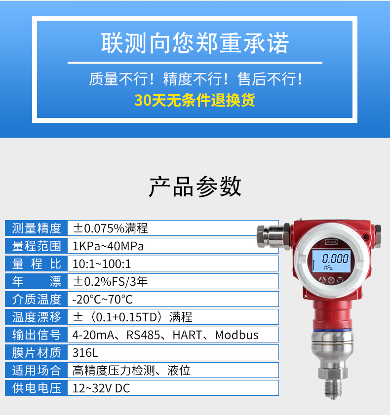 SIN-P3000單晶硅壓力變送器用于測量液體、氣體或蒸汽的液位、密度、壓力,然后將其轉變成4-20mAHART電流信號輸出,也可與HART375或BST Modem相互通信,通過他們進行參數設定、過程控制。與傳統壓力變送器的區別在于它使用的是納米單晶硅作為傳感器材料。