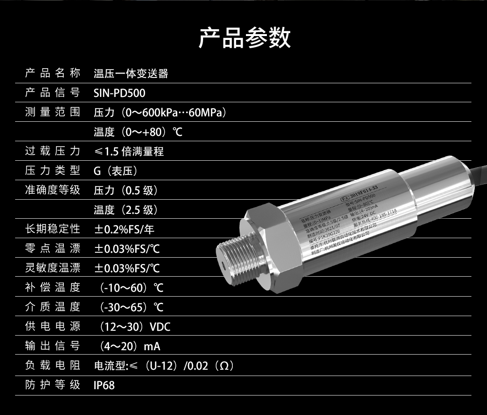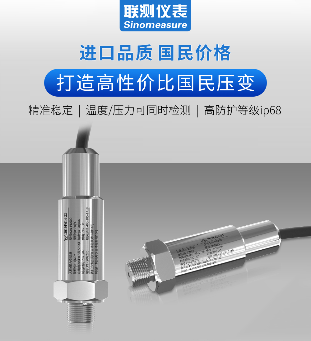 溫壓一體變送器是集壓力、溫度一體測量的變送器。 選用高可靠硅壓阻壓力傳感器、熱電阻等作為核心元件, 經過溫度補償、數字電路修正和信號調理,輸出標準的工業信號。